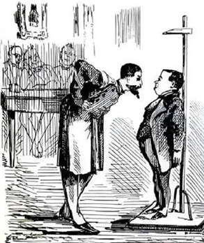 El examen médico debía ser hecho con luz natural y desahogo, mirando de frente al mozo y pasando a reconocer la cabeza, los ojos, la boca, oídos (hablando en voz baja), nariz, tórax (quitándole la camisa y auscultándolo), las extremidades superiores, abdomen, ingles, pene, testículos (con grave dignidad para evitar sandeces que nunca debe consentir el profesor), ano (introduciendo el dedo si sospecha fístula), extremidades inferiores (buscando varices) y pies (se le hace cuadrarse y marchar). Simultáneamente se iba interrogando al quinto sobre cicatrices, manchas, su antigüedad y causa (17).