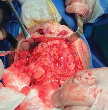 Bajo anestesia general e intubación nasotraqueal se realiza un abordaje submandibular y submental (figura 2).