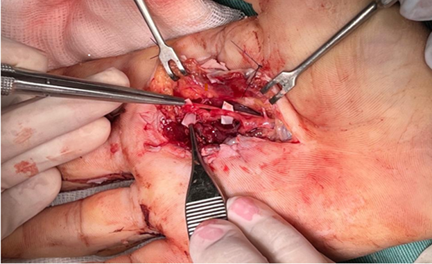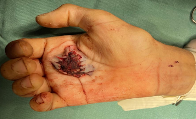 Results: The postoperative course was favorable, with no immediate complications or recurrence of bleeding. The patient demonstrated adequate wound healing and functional recovery of the hand, with no clinical signs of recurrence during follow-up.