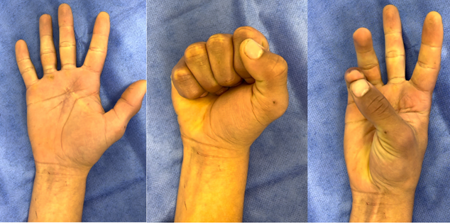 El paciente presentó una buena evolución, sin complicaciones, sin presencia de sangrado, sin lesión remanente ni déficit funcional y con una cicatrización cutánea adecuada, presentando una excelente función de la mano controlada con la prueba Quick Dash igual a 0 (figura 6).
