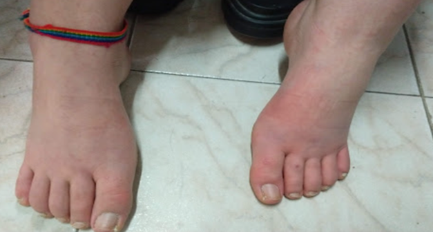 Figura 3. Pies eritematosos y rojos.
